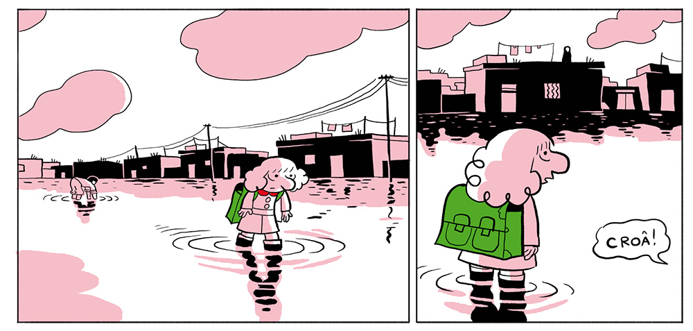 L’Arabe du futur, et le tome 2 encore plus peut-être m’a laissé un sale goût dans le gosier. J’aurais adoré que le bouquin casse les clichés et s’attache à faire un portrait au moins nuancé de sociétés qu’on regarde encore plus de travers depuis le 7 janvier. Mais Sattouf se contente d’être honnête et de décrire avec les yeux du gamin qu’il était, deux pays, Lybie et Syrie, tirés en arrière par des traditions qui nous paraissent parfois moyenâgeuses, où le meurtre d’une femme adultère est non seulement pardonné mais glorifié, où l’éducation fait tout ce qu’elle peut depuis la plus jeune enfance pour éteindre voire exterminer ce qui fait notre fierté et notre raison d’être à nous, le sens critique.